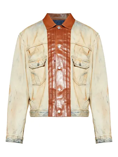 light beige and brown leather panel button fastening chest pockets buttoned cuffs buttoned hem