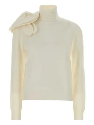 white roll neck bow detail long sleeves ribbed hem and cuffs