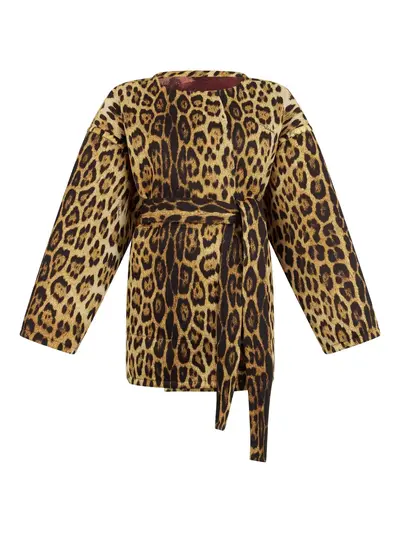 brown jaguar skin print marble print belted waist long sleeves