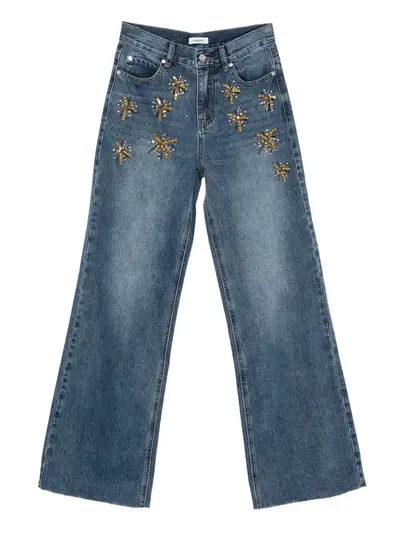 blue firework embellishment gold sequin detail five-pocket styling