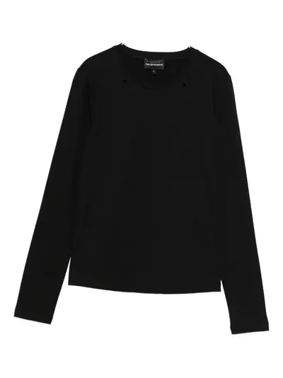 black eyelet detailing round neck long sleeves cotton
