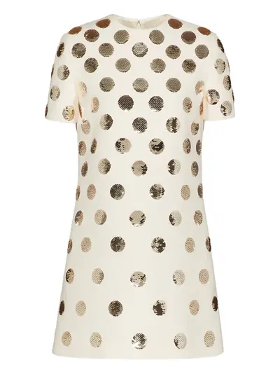 off-white sequin embellishment polka-dot pattern short sleeves round neck A-line shape