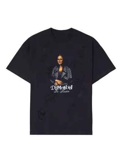 black cotton Mona Lisa graphic print short sleeves crew neck