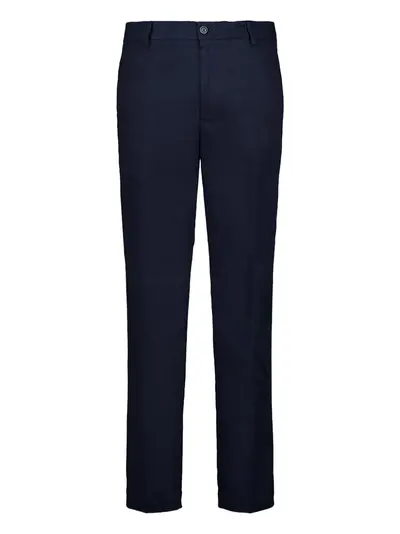midnight blue straight leg button fastening belt loops rear welt pocket
