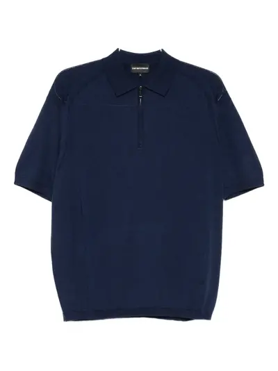 navy blue short sleeves zip detailing knitted construction straight hem polo collar