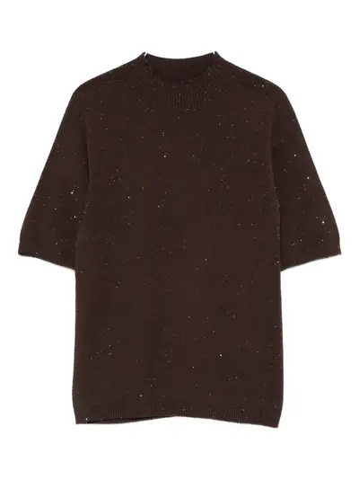 chocolate brown short sleeves round neck ribbed knit