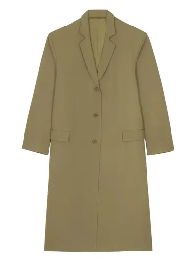 khaki front button fastening notched lapels long sleeves two front flap pockets straight hem