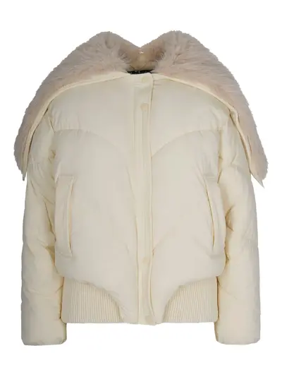 beige faux fur trim front zip fastening ribbed hem button fastening front pockets