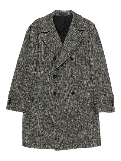 grey herringbone pattern double-breasted button fastening notched lapels long sleeves