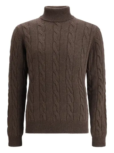 brown cable knit roll neck long sleeves ribbed hem ribbed cuffs