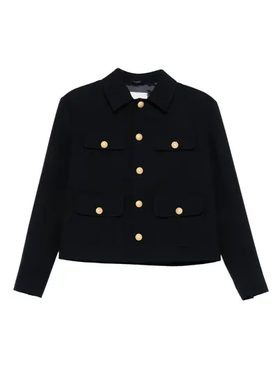 navy blue front button fastening chest flap pockets front flap pockets long sleeves classic collar