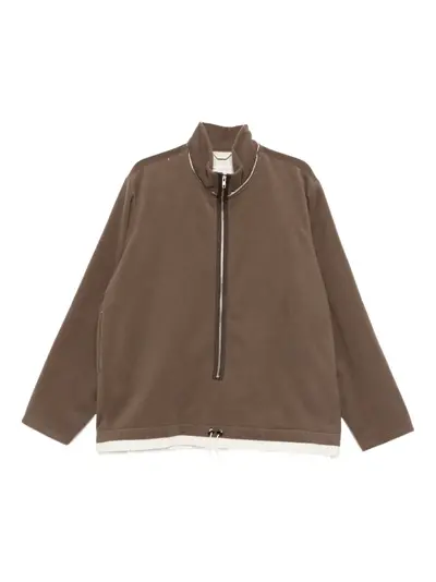 taupe front zip fastening drawstring hem high neck long sleeves trim detail
