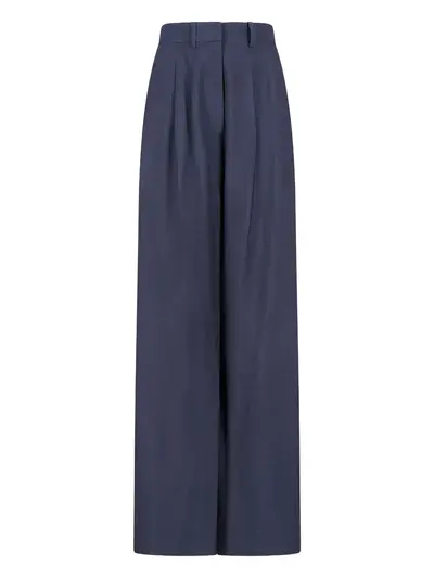 dark blue pleat detail belt loops concealed fly fastening rear welt pockets