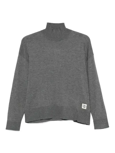 grey high neck long sleeves logo patch ribbed hem ribbed cuffs
