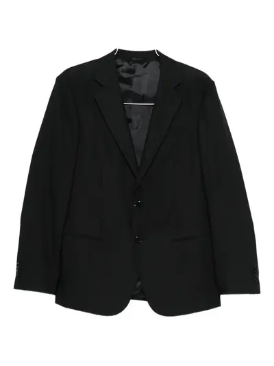black wool front button fastening notched lapels side slit pockets long sleeves buttoned cuffs