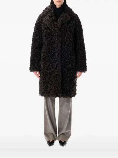 dark chocolate textured finish lapel collar front button fastening side slit pocket long sleeves