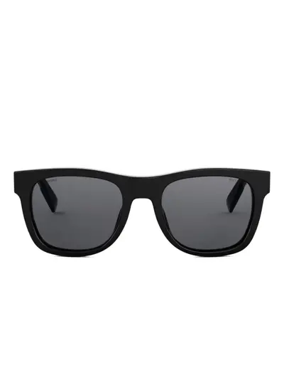black square frame logo detail tinted lenses straight arms curved tips These glasses come with a protective case.