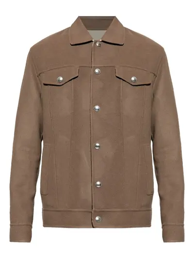 brown wool clap fastening two chest pockets side welt pockets clap fastening cuffs