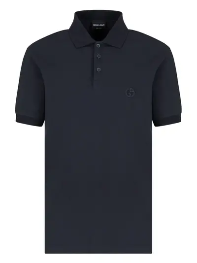 navy blue button fastening short sleeves logo detail ribbed cuffs