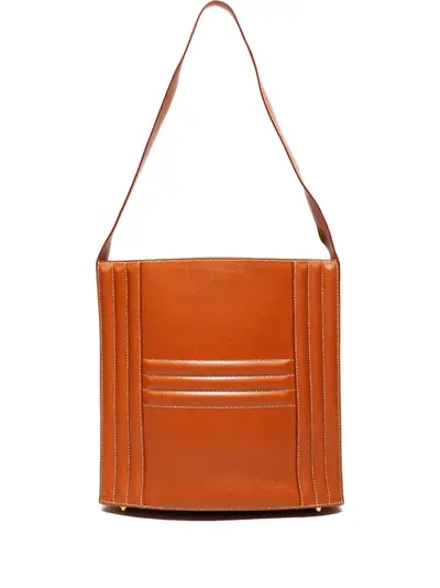 brown shoulder strap top zip fastening internal zip pocket contrast stitching