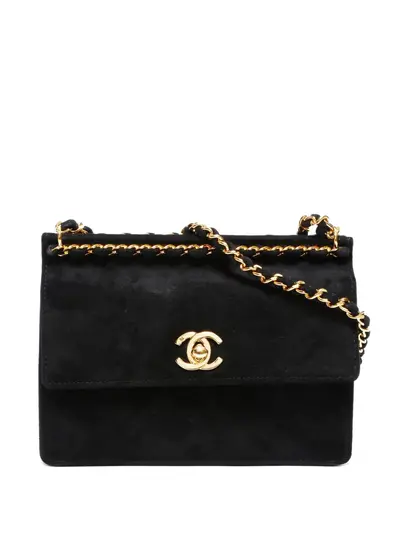 black gold-tone hardware CC mark chain strap turnlock fastening suede Serial Number:4992686