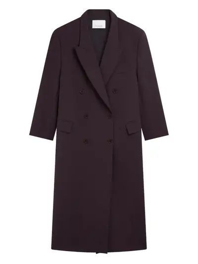 dark plum purple double-breasted button fastening peak lapels flap pockets long sleeves