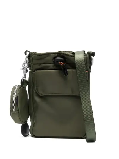 sage green detachable pouch adjustable shoulder strap front flap pocket drawstring fastening silver-tone hardware