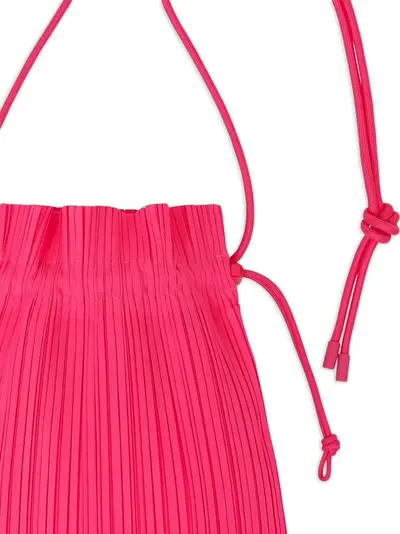 bright pink pleated design drawstring fastening shoulder strap knot detail top opening