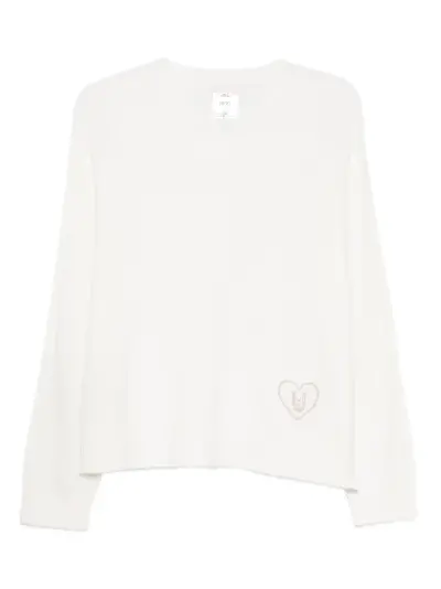 white heart motif boat neck long sleeves ribbed cuffs and hem