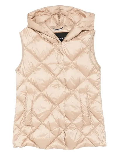 light beige quilted classic hood sleeveless front pockets concealed front fastening