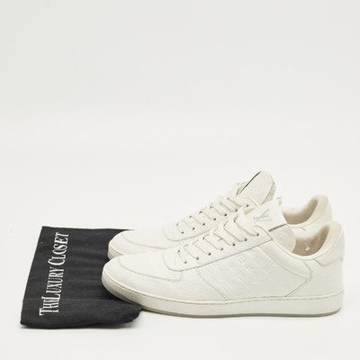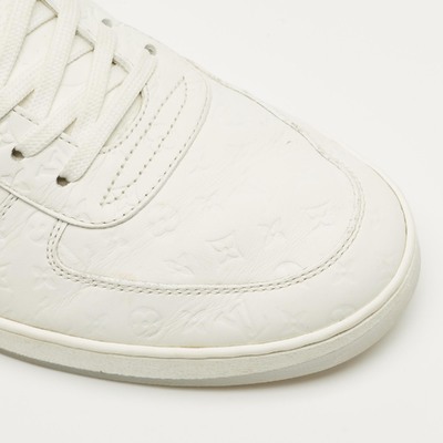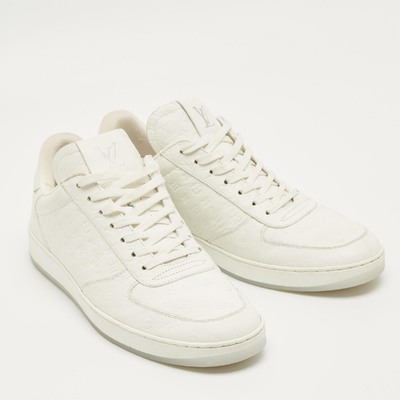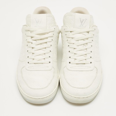 These Louis Vuitton Rivoli sneakers are crafted from smooth white leather with subtle logo accents. The classic lace up silhouette exudes understated sophistication and versatility. A must have for those who appreciate clean design and timeless style.