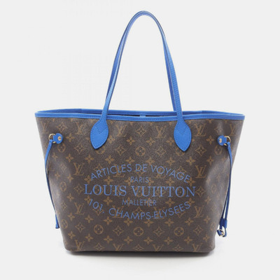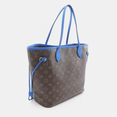A floral update to the iconic Louis Vuitton Neverfull, this MM tote features Monogram canvas overlaid with blue Ikat flower motifs. The roomy interior and leather side laces make it versatile for daily use, work, or travel.