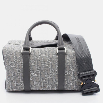 Christian Dior Dior Lingot26 Lango Oblique Gray/Silver Canvas Leather Handbag 1228928 (lpn31050946)