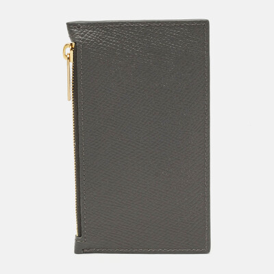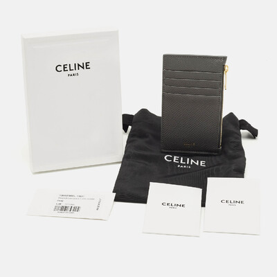 Celine brings refined precision to the essentials with this zip card holder. Rendered in supple grey leather, it features clean lines and subtle branding—a signature of the maison’s quiet luxury. A perfect blend of utility and Parisian sophistication.