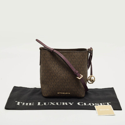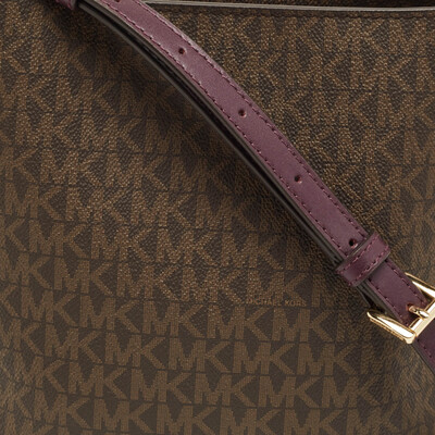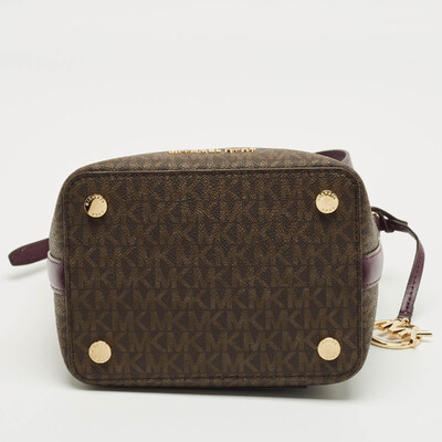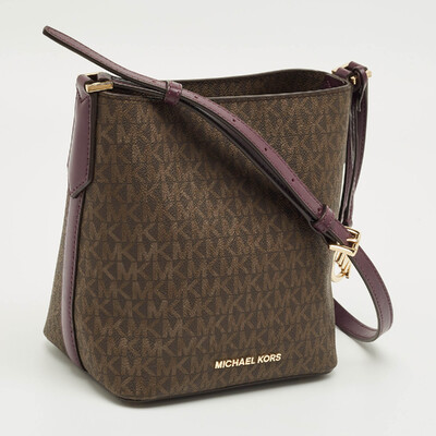 Crafted with the brand’s iconic monogram coated canvas, this Michael Kors bucket bag blends everyday elegance with practicality. The purple and brown hues lend a chic, modern edge, while the leather trim adds structure and luxury. Perfect for day to evening transitions, it keeps your essentials stylishly secured.