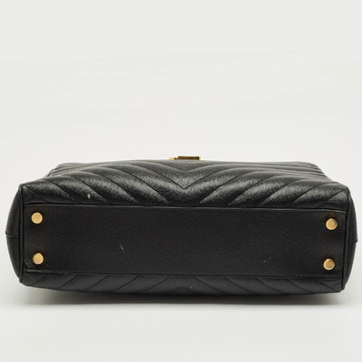 Saint Laurent Black Matelassé Leather Cassandre Shopper Tote 1227843 - 1