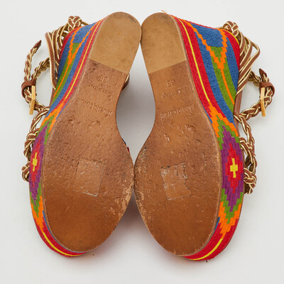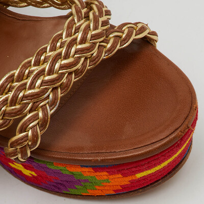 Roberto Cavalli Gold Braided Leather Platform Wedge Ankle Strap Sandals Size 38 1227703 (lpn31051094)