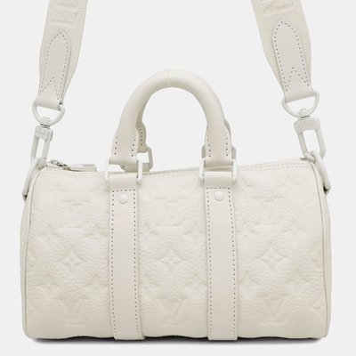 A pristine reinterpretation of the legendary Keepall, this monogram Taurillon leather handbag blends timeless travel spirit with urban refinement. Crisp white tones and soft textures invite effortless sophistication on the move.