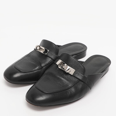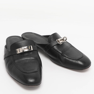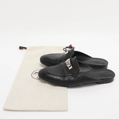 Hermes Black Leather Oz Mules Size 38 1228358 (чёрный, lpn31051113)