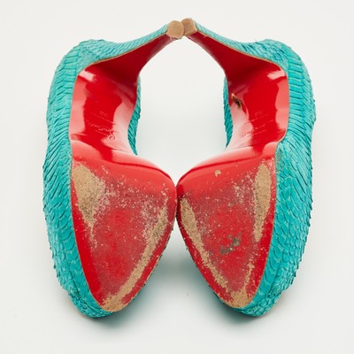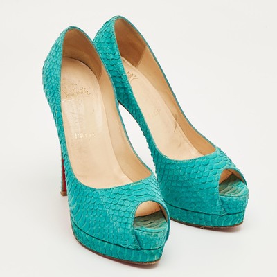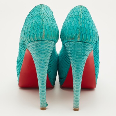 Radiating bold sophistication, Louboutin’s Lady Peep pumps captivate in green python leather. The towering heel and signature peep toe silhouette elongate the leg, while the red lacquered sole punctuates every stride with unmistakable allure. A confident choice for gala evenings or editorial ready moments.