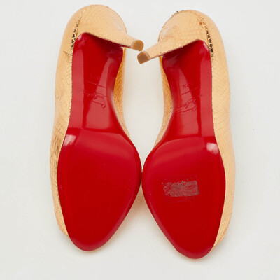 Christian Louboutin Metallic Python Embossed Leather Very Prive Peep Toe Pumps Size 37.5 1228713 (lpn31051129)