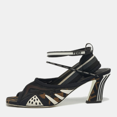 Fendi Black/Brown FF Neoprene and Mesh Freedom Patchwork Slingback Sandals Size 40 1228198 (чёрный, lpn31051141)