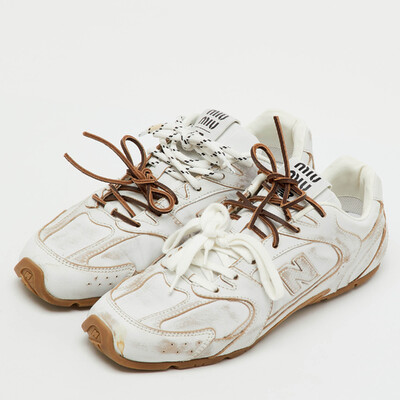 Miu Miu x New Balance White Leather 530 SL Low Top Sneakers Size 42 1227786 (белый, lpn31051144)