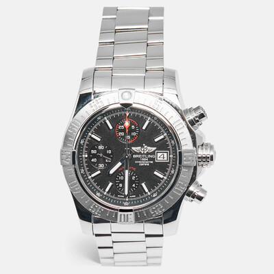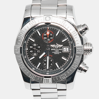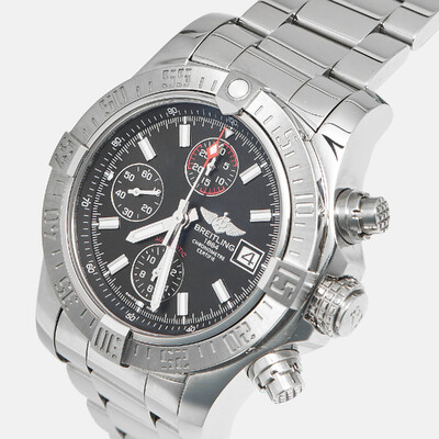 Engineered for performance, this Breitling Avenger II Chronograph features a bold black dial with luminous markers and a sturdy stainless steel case. Precision, durability, and style come together in this aviation inspired design. A powerful timepiece for the modern gentleman.