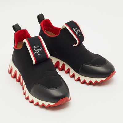 Christian Louboutin Black Leather and Neoprene Tiketa High Top Sneakers Size 38.5 1226211 (чёрный, lpn31051227)