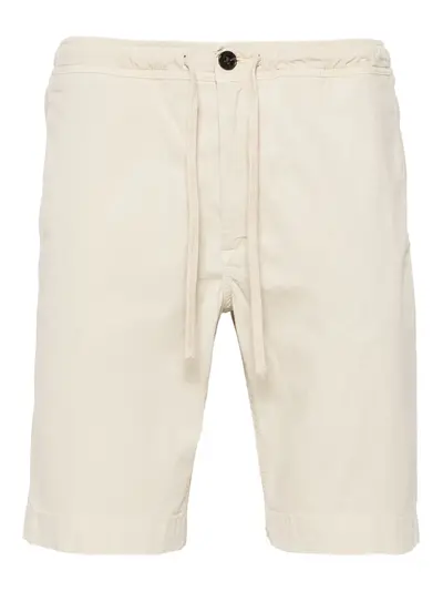 beige cotton blend mid-rise elasticated drawstring waistband concealed front zip fastening two side slit pockets two rear welt pockets straight leg above-knee length