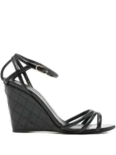 2010s black quilted design ankle strap wedge heel multiple straps buckle fastening Condition: EXCELLENT. This previously owned item is in near-perfect condition with no signs of damage or use.