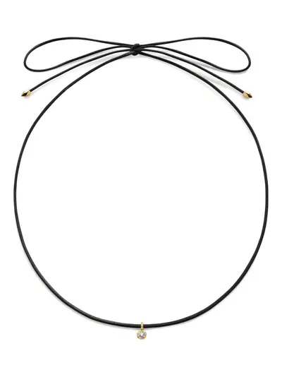 gold-tone black cord diamond pendant 18K gold vermeil accents adjustable length sliding knot fastening Normal everyday use and external agents may reduce the lustre of gemstones and gold surfaces. To maintain, use specific, non-abrasive products specially meant for cleaning jewellery.