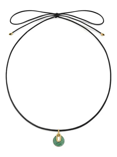 green 18kt gold vermeil gemstone pendant black cord adjustable fastening gold clasp