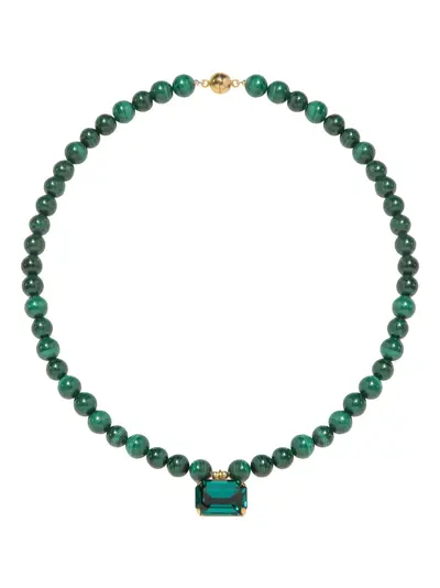malachite green beaded embellishment rectangular pendant gold-tone hardware clasp fastening engraved logo Normal everyday use and external agents may reduce the lustre of gemstones and gold surfaces. To maintain, use specific, non-abrasive products specially meant for cleaning jewellery.